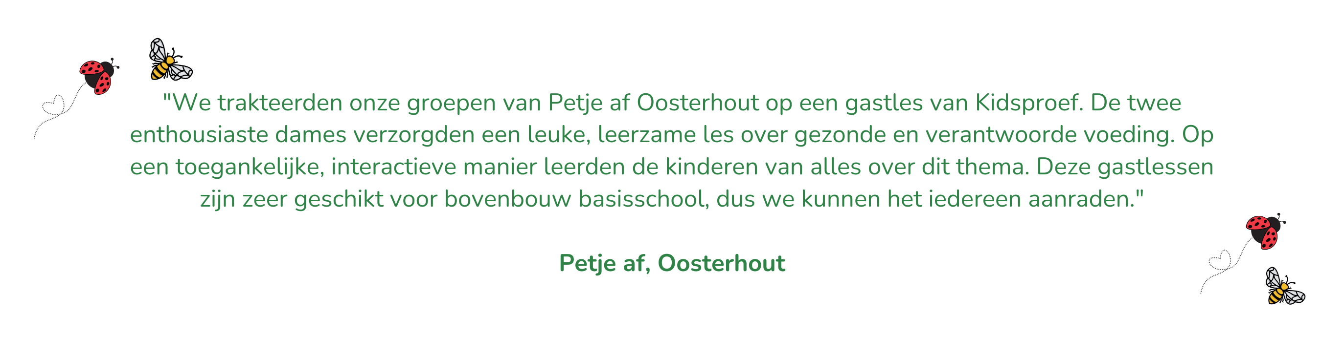KidsProef is bedoeld voor groepen 6, 7 en 8. Tijdens de gastles nemen onze enthousiaste ambassadeurs de kinderen mee in de wereld van voeding: van waar ons eten vandaan komt tot wat het doet voor ons lichaam en de aarde.